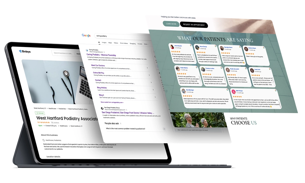 If someone looks up ‘podiatrist near me’ or ‘bunions’ or ‘orthotics,’ my practice pops up on top of the first page due to strong SEO. Most podiatrists in the area use Google Ads, so how we get to the top is Blue Orchid’s secret.